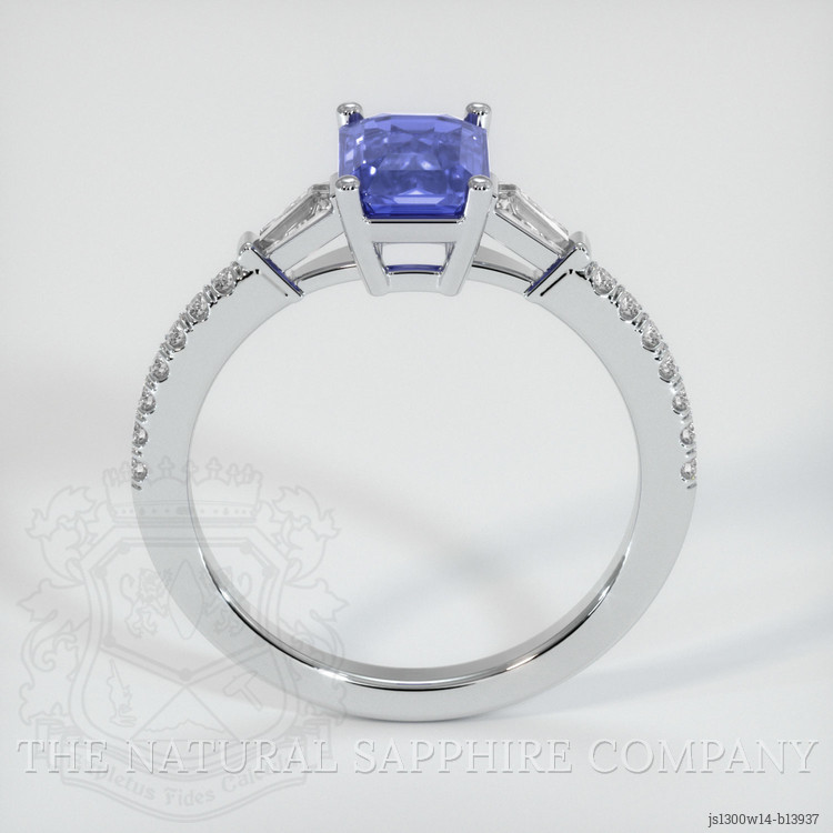 The ring features a beautiful, transparent GIA certified Blue 1.39 carat emerald cut shape blue sapphire with the dimensions of 7.77 x 5.54 x 3.08 mm and a emerald cut. It has a clarity grade of very slightly included (evaluated at eye level), intense color saturation, and an excellent polish. The origin of this sapphire is Ceylon (Sri Lanka).