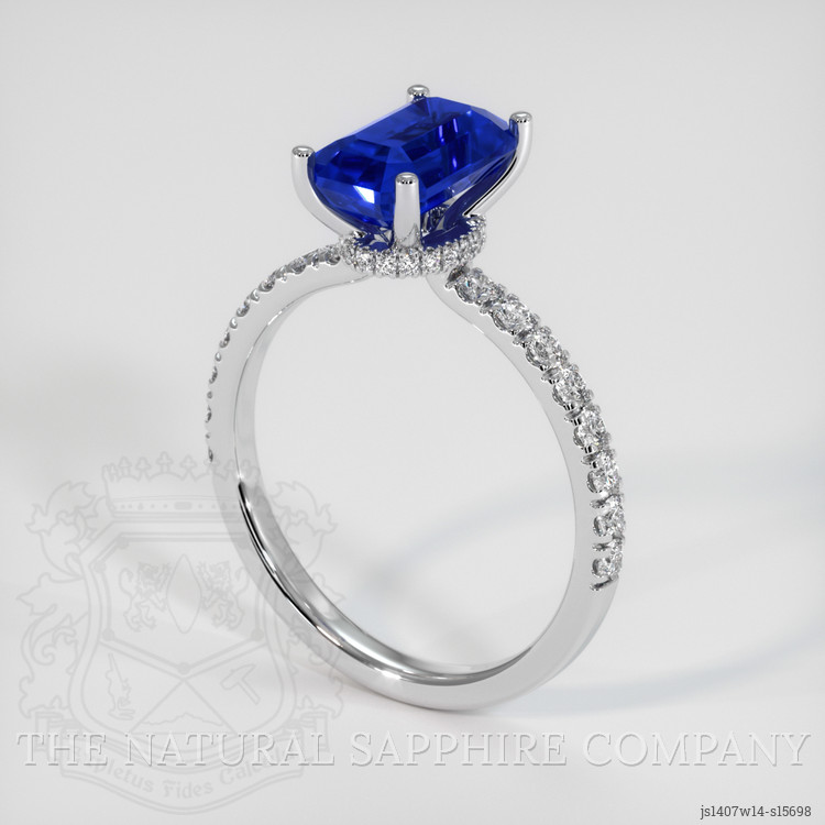 The centerpiece of this exquisite ring is a transparent 1.74 carat blue sapphire, expertly cut in an emerald shape with dimensions of 8.17 x 5.27 x 3.82 mm. Known for its vivid color saturation, this sapphire exhibits an eye-level clarity grade of very slightly included, showcasing the natural allure and brilliance unique to sapphires of such high quality. The excellent polish enhances its inherent luster, making it a truly captivating gemstone. Originating from Ceylon, presently known as Sri Lanka, this sapphire carries a legacy of prestige in the world of gemstones. Sri Lanka is celebrated for producing some of the finest sapphires, gracing the pieces made by The Natural Sapphire Company with an unmatched heritage and authenticity.