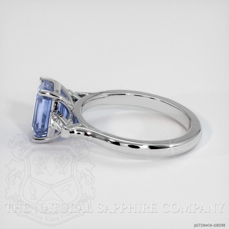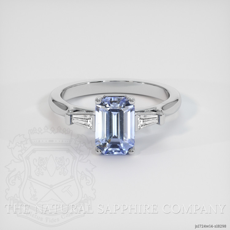 Introducing a masterpiece of elegance and sophistication from The Natural Sapphire Company, a jewel that transcends time and speaks to those who discern the true essence of beauty. This exquisite ring features a breathtaking 1.80 carat emerald-cut blue sapphire, a gem that epitomizes rarity and exclusivity. With dimensions of 7.57 x 5.01 x 4.53 mm, this sapphire is a glimpse into the depths of the extraordinary, boasting an unparalleled clarity grade of very slightly included, appreciated only by the most discerning eye. Its medium light color saturation is a dance of cerulean hues, reminiscent of the serene ocean waves from its origin in the majestic lands of Ceylon, Sri Lanka.