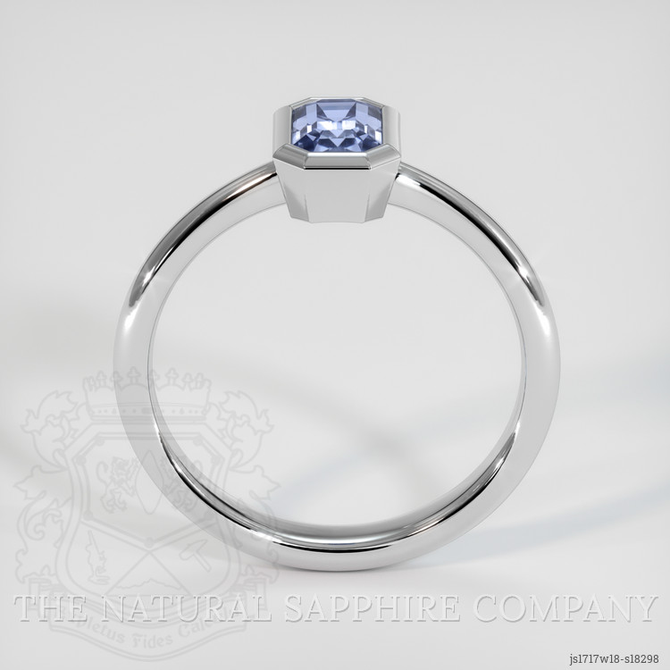 The ring is crafted entirely in 14 karat white gold, a metal choice that balances enduring strength with a bright, contemporary aesthetic. Fourteen karat gold contains approximately fifty eight percent pure gold with the remainder composed of alloy metals that increase hardness and resistance to deformation in daily wear. Compared with higher purity yellow gold variants, 14 karat white gold offers greater scratch resistance and structural resilience, making it particularly well suited for a men s ring meant to be worn regularly. The sapphire is set in a low profile bezel setting, which secures the stone along its girdle and protects the vulnerable corners of the emerald cut from impact, while also minimizing snagging and reducing exposure to knocks. The bezel combined with the inherent toughness of corundum, which rates nine on the Mohs hardness scale, creates a pairing that is robust for long term wear, yet refined in silhouette for everyday elegance.