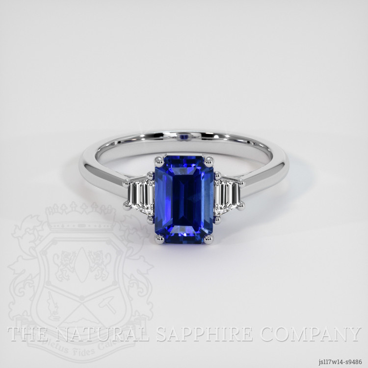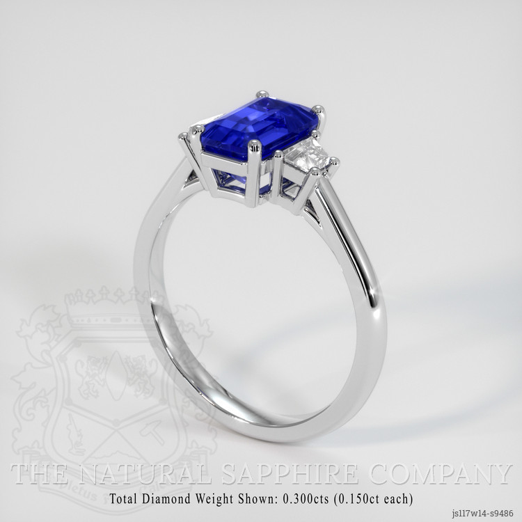 Paired harmoniously with white trapezoid-shaped diamonds, this piece accentuates brilliance and sophistication. Each diamond glimmers with remarkable clarity, holding a grade of Very Slightly Included (VS1, VS2), and a color grade of E, enveloped in the opulent embrace of platinum 950. These diamonds, totaling approximately 0.30 carats, are a triumph of art and craftsmanship. They complete the ring, echoing a sweet whisper of elegance around the vivid blue centerpiece. At The Natural Sapphire Company, we understand that crafting such beauty isn't solely about technique. It's about breathing life into a piece, transforming it into a legacy that yearns to be shared.