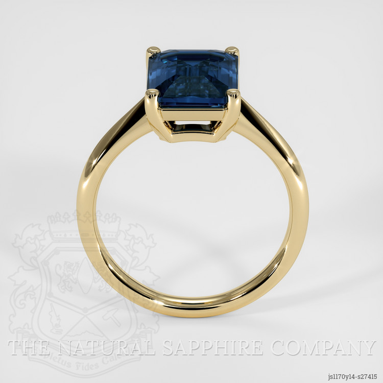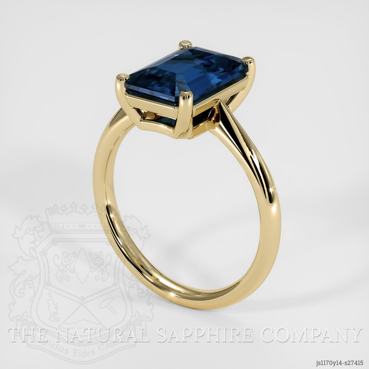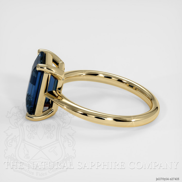 The setting and execution prioritize craftsmanship and durability, with secure prongs positioned to protect the corners of the emerald cut while keeping the pavilion exposed for optimal light return. The 14K yellow gold setting provides warm contrast to the cool blue, enhancing visual depth without distracting from the sapphire. This ring is presented by The Natural Sapphire Company, and its design is intended for those who appreciate measured, architectural styling married to high quality gem material. It functions equally well as a signature piece or as a refined engagement option, offering timeless geometry, transparent color, and meticulous finishing.