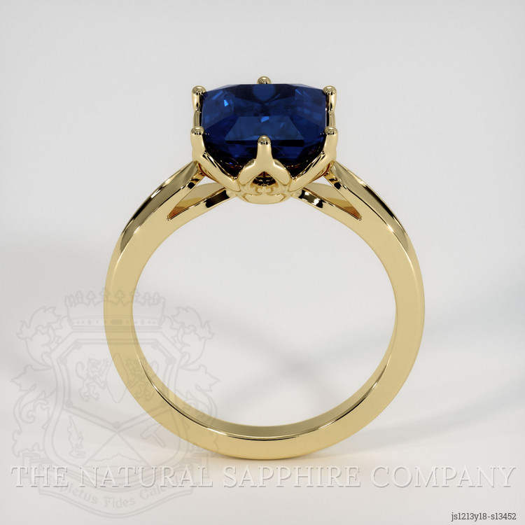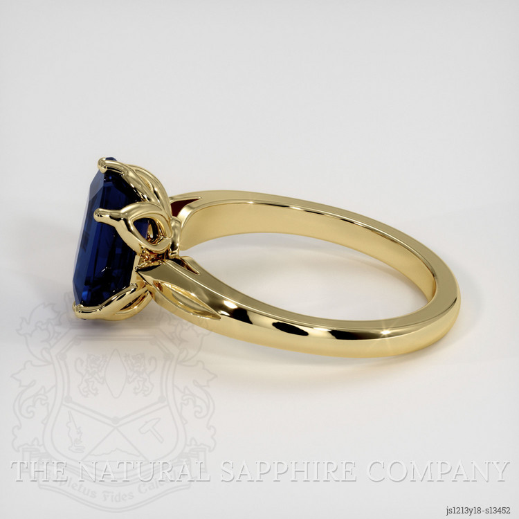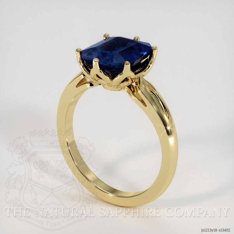This exquisite ring is the epitome of sophistication and luxury, designed to captivate and charm. The stunning centerpiece, a 3.05 carat emerald cut blue sapphire, stands as a testament to elegance and timeless beauty. Its mesmerizing dimensions, 9.13 x 7.55 x 4.04 mm, present a perfect balance of proportion and grace, enhancing the allure of this magnificent gemstone. With an eye-clean clarity grade, vivid color saturation, and an excellent polish, the sapphire reflects the highest standards of quality and craftsmanship. Sourced from the prestigious region of Ceylon in Sri Lanka, the sapphire's origin adds an extra layer of prestige and distinction. Encased in an 18K yellow gold setting, the ring exudes warmth and opulence, creating a spectacular contrast with the vibrant blue of the sapphire. This piece of art is not only a testament to refined taste but also a crowning achievement of personal elegance and status. The ring's versatility allows it to harmonize effortlessly with other jewelry pieces in your collection, complementing a wide array of styles and occasions. Whether worn as an everyday symbol of sophistication or reserved for moments of grandeur, this ring is sure to become an object of desire, reflecting the wearer's cultivated sense of style and discernment.