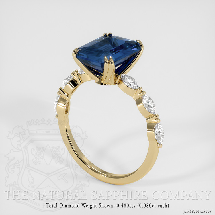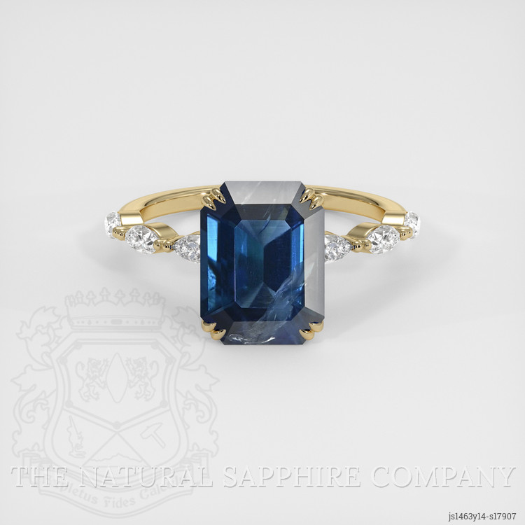Introducing a masterpiece from The Natural Sapphire Company, this ring exhibits a stunning 4.27 carat blue sapphire, meticulously cut in the refined emerald cut style. Its dimensions, measuring 11.21 x 8.32 x 4.91 mm, reflect precise craftsmanship that emphasizes both its clarity and shape. With a clarity grade of slightly included, the sapphire retains its natural character while showcasing an entrancing dark color saturation, further enhanced by its excellent polish. Notably, this sapphire remains unenhanced, preserving its natural allure, harvested from the rich gemstone deposits of Africa.