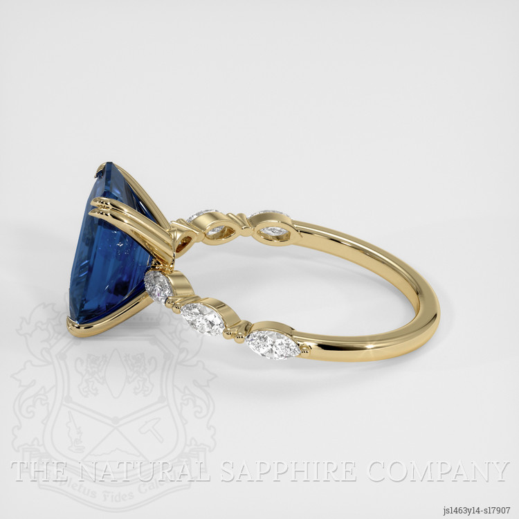 The 14K yellow gold band not only enhances the regal blue of the sapphire but also provides a timeless elegance that suits any occasion. This choice of metal is prized for its enduring quality and versatility, ensuring that the ring maintains its luster and beauty over the years. The band's gentle contouring adds comfort, allowing this exquisite piece to be worn effortlessly.