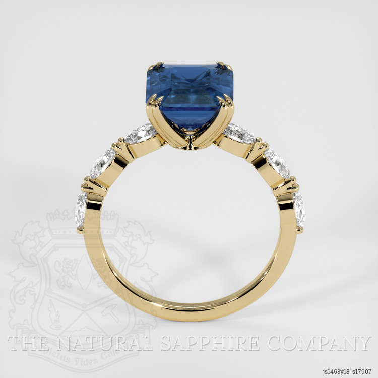 Introducing a masterpiece from The Natural Sapphire Company, this ring exhibits a stunning 4.27 carat blue sapphire, meticulously cut in the refined emerald cut style. Its dimensions, measuring 11.21 x 8.32 x 4.91 mm, reflect precise craftsmanship that emphasizes both its clarity and shape. With a clarity grade of slightly included, the sapphire retains its natural character while showcasing an entrancing dark color saturation, further enhanced by its excellent polish. Notably, this sapphire remains unenhanced, preserving its natural allure, harvested from the rich gemstone deposits of Africa.