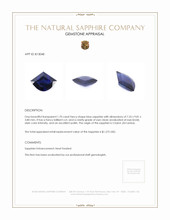 The men's ring features a beautiful, transparent 1.70 carat fancy shape blue sapphire with the dimensions of 7.25 x 9.81 x 3.80 mm and a fancy brilliant cut. It has a clarity grade of eye clean (evaluated at eye level), dark color saturation, and an excellent polish. The origin of this sapphire is Ceylon (Sri Lanka).