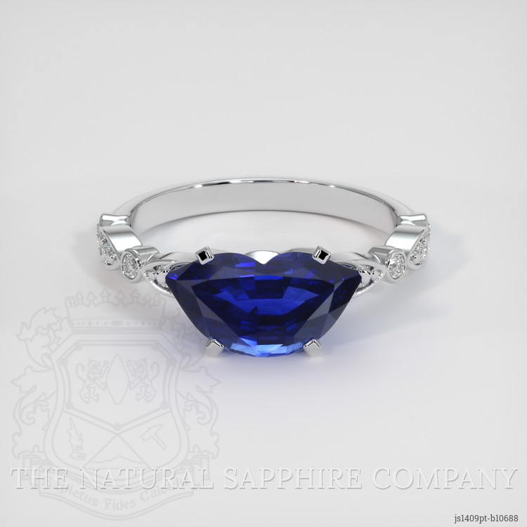 Introducing a masterpiece from The Natural Sapphire Company, an exquisite ring featuring a beautiful 2.51 carat fancy shape blue sapphire. This transparent gemstone, with dimensions of 6.37 x 12.56 x 4.19 mm, is expertly crafted with a fancy cut that enhances its brilliance and depth. The sapphire boasts a clarity grade classified as eye clean, ensuring that no inclusions are visible to the naked eye, allowing the vibrant blue hues to shine unobstructed. Its vivid color saturation is a testament to the gemstone's exquisite quality, with origins rooted in the renowned gem mines of Ceylon, Sri Lanka, a region known for producing superior sapphires.