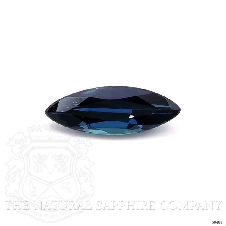 This exquisite ring features a stunning, transparent 0.87 carat marquise-shaped blue sapphire. The dimensions of the gemstone are 10.15 x 3.67 x 2.97 mm, and it showcases a mixed brilliant cut, ensuring that light dances within its facets. The sapphire has a clarity grade of very slightly included, evaluated at eye level, exhibiting only minimal inclusions that are not easily detectable by the naked eye. With a dark color saturation, the blue hue of the sapphire is deep and captivating. Additionally, the gem is meticulously polished to an excellent grade, enhancing its brilliant shine.