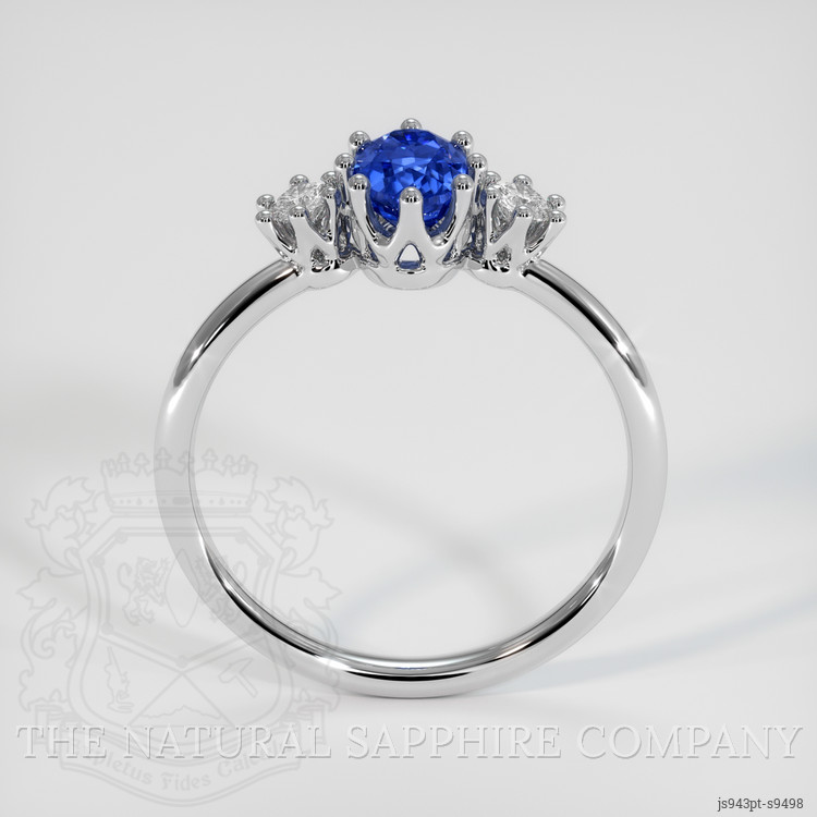Encasing this remarkable trio of gems is a setting crafted from the finest platinum 950. Renowned for its superior strength and timeless luster, platinum serves as the perfect foundation for such a distinguished piece. Its understated sheen offers a silent nod to the caliber of craftsmanship synonymous with The Natural Sapphire Company. The platinum setting, with its cool, silvery tone, enhances the vivid color play of the sapphire and diamonds, creating a ring that is not just worn but experienced.