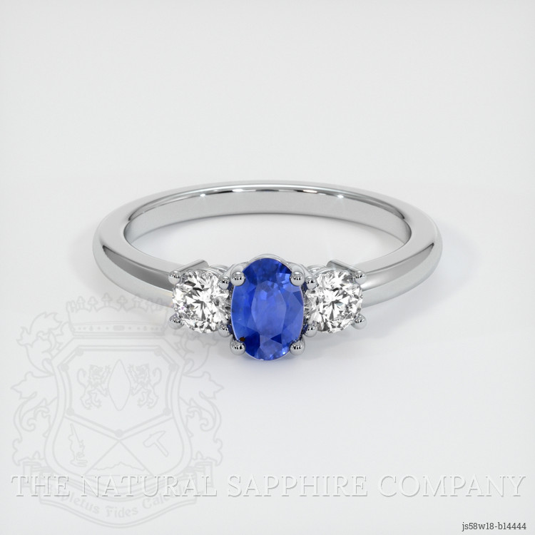 Three Stone Blue Sapphire Ring 0.77 Ct., 18K White Gold