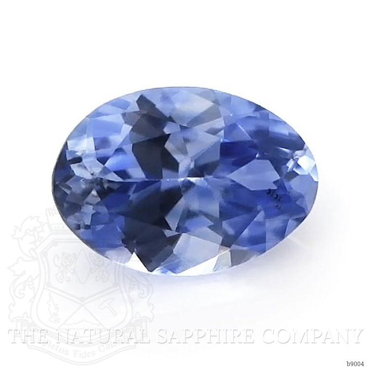 The ring features a beautiful, transparent 0.79 carat oval shape blue sapphire with the dimensions of 6.88 x 4.82 x 3.19 mm and a mixed brilliant cut. It has a clarity grade of very slightly included (evaluated at eye level), medium color saturation, and an excellent polish. The origin of this sapphire is Ceylon (Sri Lanka).
