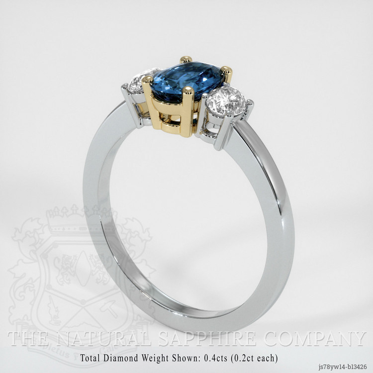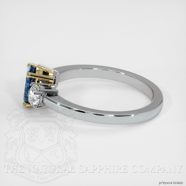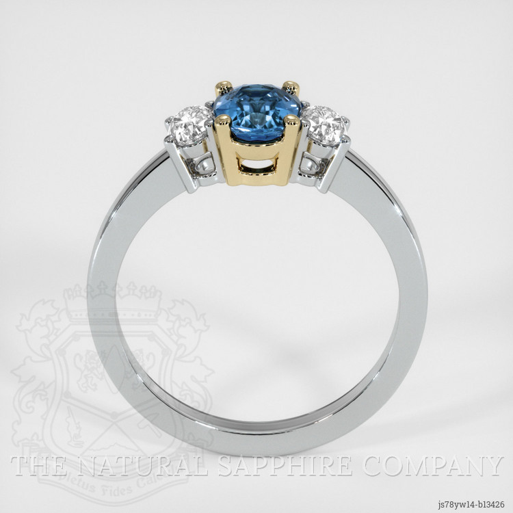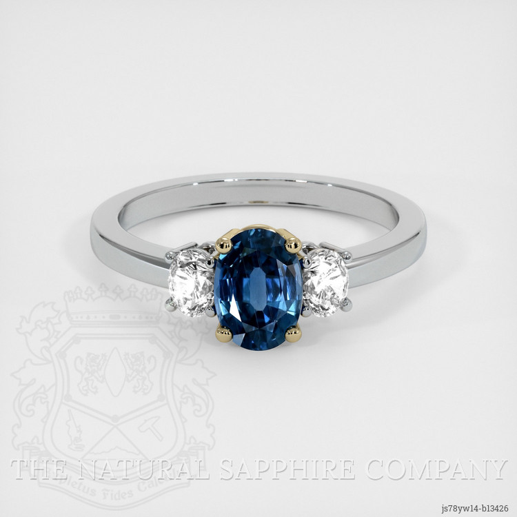 Three Stone Blue Sapphire Ring 0.95 Ct., 14K Yellow & White