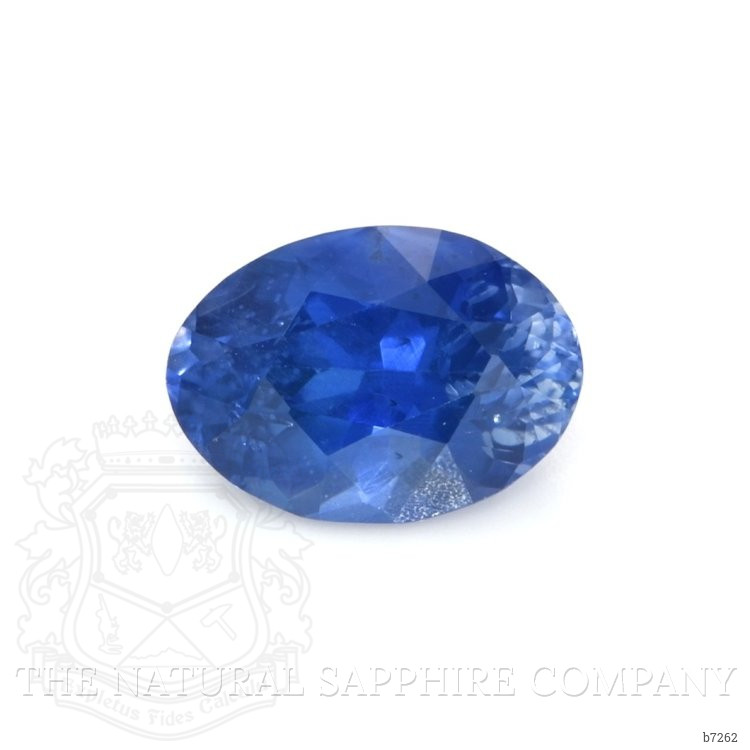 The ring features a beautiful, transparent 0.96 carat oval shape blue sapphire with the dimensions of 6.98 x 4.97 x 3.82 mm and a mixed brilliant cut. It has a clarity grade of slightly included (evaluated at eye level), intense color saturation, and an excellent polish. The origin of this sapphire is Ceylon (Sri Lanka).