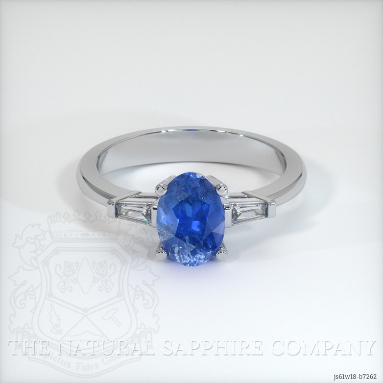 Three Stone Blue Sapphire Ring 0.96 Ct., 18K White Gold