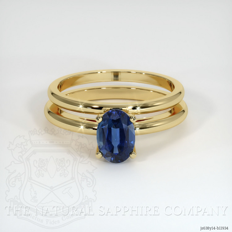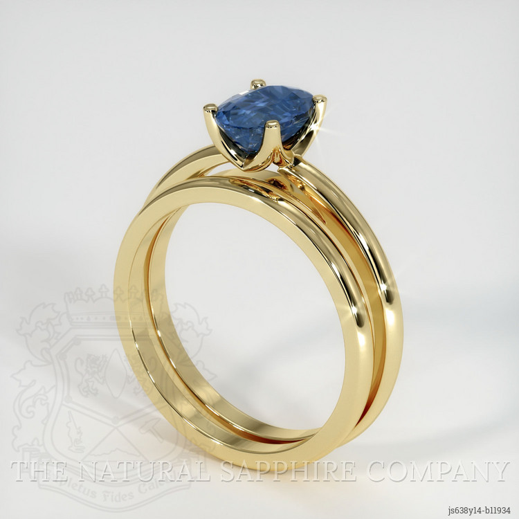 Wedding Set Blue Sapphire Ring 0.97 Ct., 14K Yellow Gold