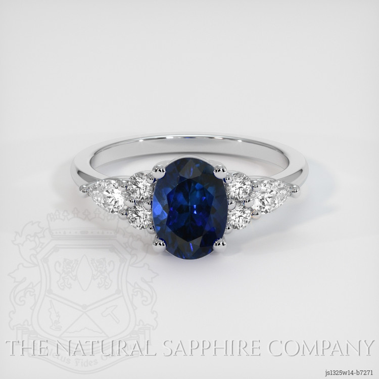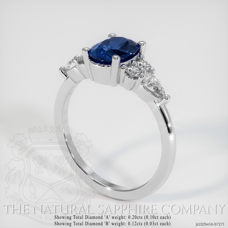 Accent Stones Blue Sapphire Ring 0.98 Ct., 14K White Gold