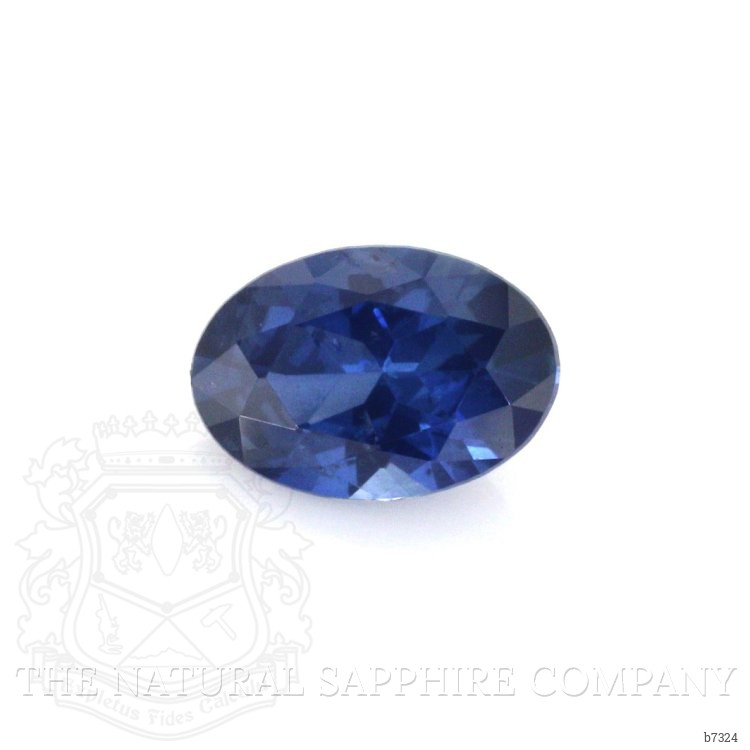 The ring features a beautiful, transparent 0.98 carat oval shape blue sapphire with the dimensions of 7.53 x 5.19 x 3.41 mm and a mixed brilliant cut. It has a clarity grade of very slightly included (evaluated at eye level), intense color saturation, and an excellent polish. The origin of this sapphire is Thailand.