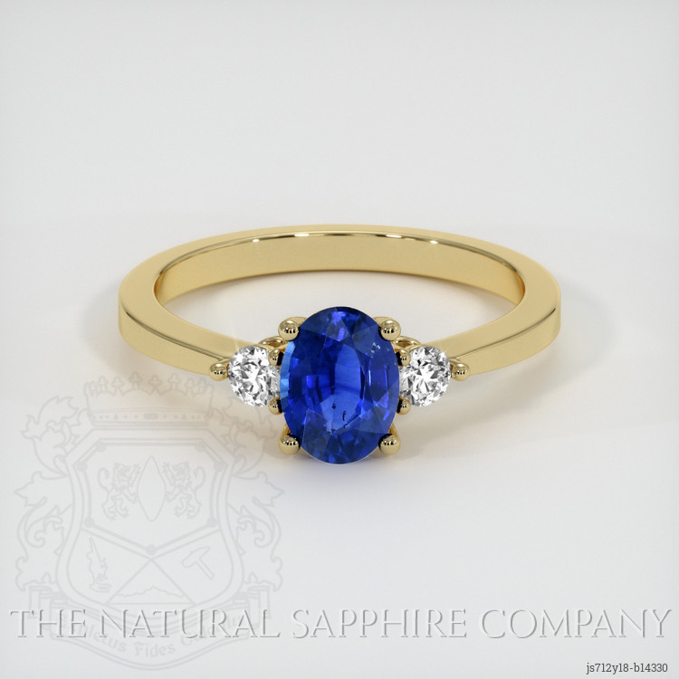 Three Stone Blue Sapphire Ring 1.03 Ct., 18K Yellow Gold