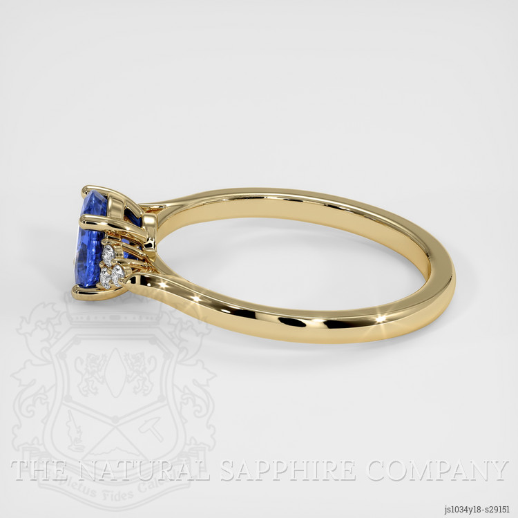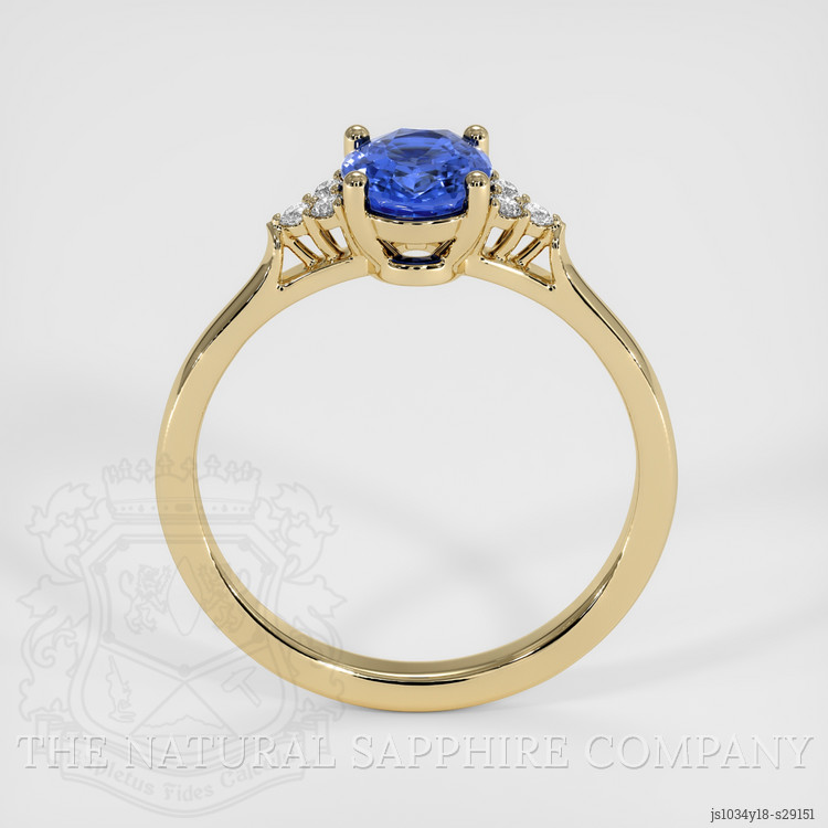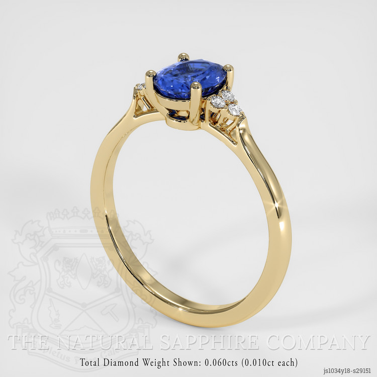 The design draws inspiration from organic forms interpreted through an architectural lens, the gallery and shoulder work echoing a leaf vein skeleton translated into load bearing arches that direct light into the pavilion, prong architecture is sculpted to resemble petal tips that cradle the oval, each prong terminates with a subtle chamfer to reduce light obstruction while maintaining secure mechanical retention, the shoulders taper with a gentle bevel that visually extends the sapphire and creates a seamless transition from stone to band. The open under gallery provides negative space that enhances translucency and allows light to feed into the mixed brilliant facets, while the 14K yellow gold mounting is engineered for longevity, the shank thickness balanced for everyday wear without sacrificing elegance, all metal surfaces receive an exacting polish to accentuate reflections and to harmonize with the intense sapphire color. This piece from The Natural Sapphire Company exemplifies restrained complexity, combining gemological excellence with considered structural details, suitable for a buyer who values precise faceting language, measured color grading, and artisanal setting techniques.