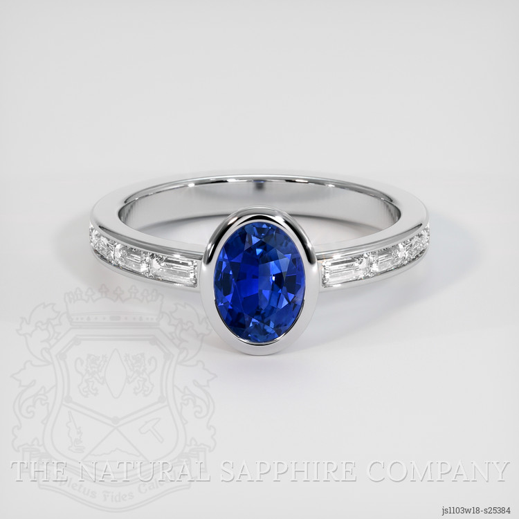 Discover the elegance of The Natural Sapphire Company's exquisite ring, featuring a stunning 1.08 carat oval-shaped blue sapphire at its center. Sourced from the renowned gem origins of Ceylon, Sri Lanka, this sapphire measures 7.45 x 5.39 x 3.29 mm and is a testament to superior craftsmanship with its mixed brilliant cut. The sapphire's vivid color saturation, coupled with a very very slightly included clarity grade, ensures a mesmerizing sparkle and depth of color. Expertly heat-treated, the stone exhibits an excellent polish that enhances its natural brilliance, making it an exceptional piece of jewelry that embodies both rarity and elegance.