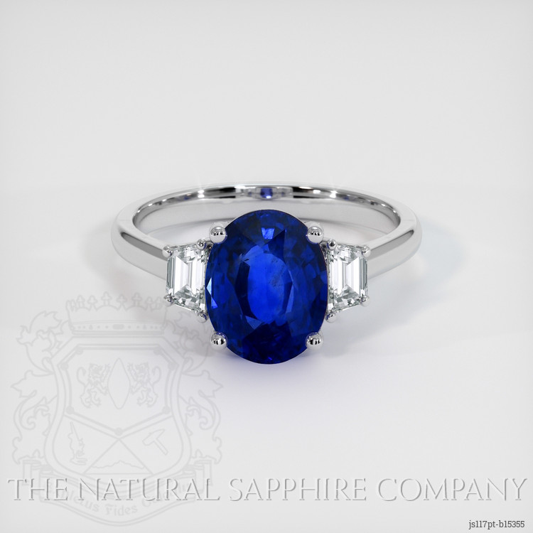 Three Stone Blue Sapphire Ring 1.99 Ct., Platinum 950