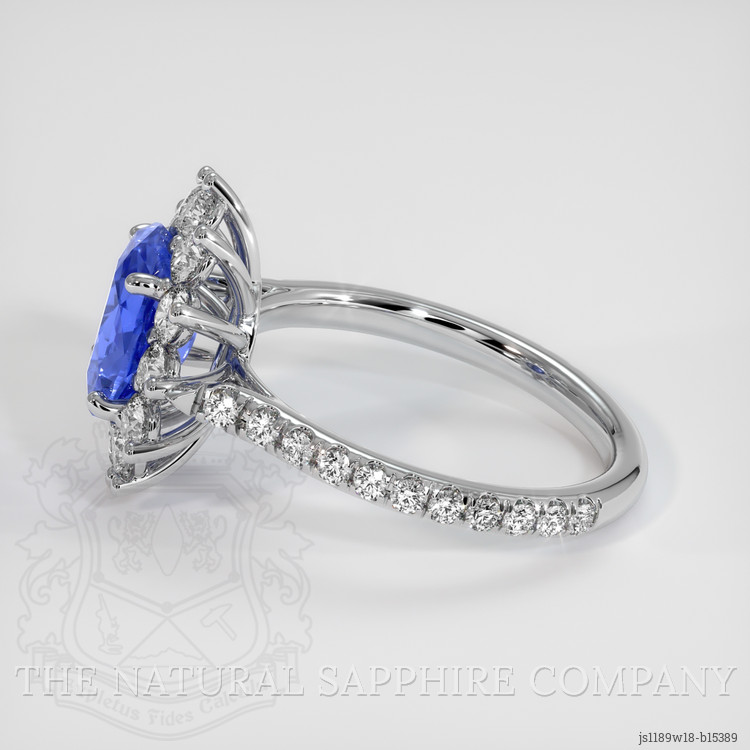 At the heart of this splendid ring lies a stunning 2.39 carat oval-shaped blue sapphire. Sourced from the legendary lands of Ceylon, Sri Lanka, this sapphire promises an entrancing kaleidoscope of azure hues that beckon the beholder into a world of deep fascination. The sapphire’s dimensions, 9.44 by 6.92 by 4.26 mm, ensure it captures light from every angle, showcasing the mixed brilliant cut that enhances its dazzling play of colors. Its clarity, very slightly included yet exceptional to the untrained eye, coupled with an intense color saturation and an impeccable polish, speak to its pedigree and unmatched quality.