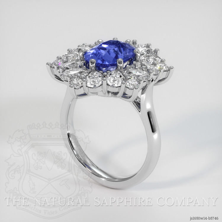 Halo Blue Sapphire Ring 2.50 Ct., 14K White Gold