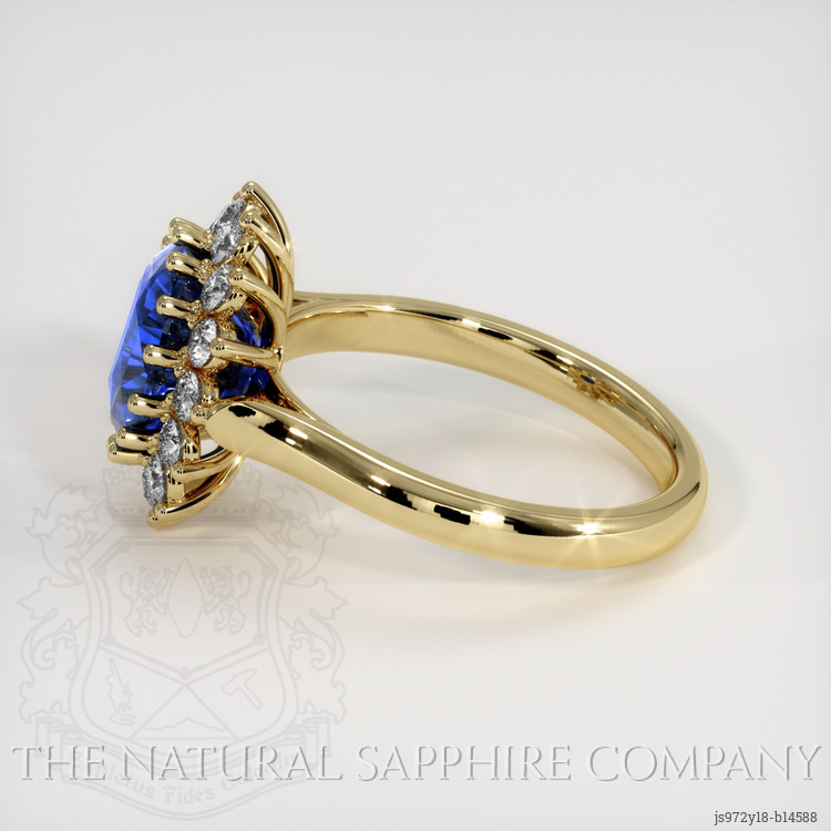 Halo Blue Sapphire Ring 3.49 Ct., 18K Yellow Gold