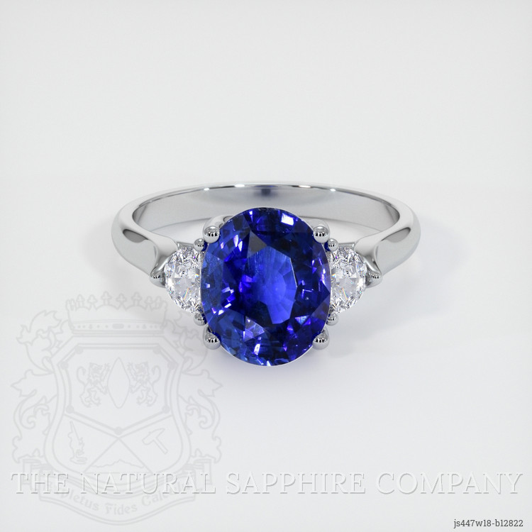 Three Stone Blue Sapphire Ring 4.05 Ct., 18K White Gold