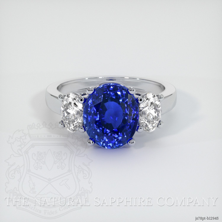 Three Stone Blue Sapphire Ring 4.23 Ct., Platinum 950