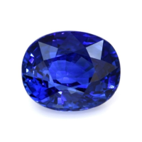 The ring features a beautiful, transparent 4.45 carat oval shape blue sapphire with the dimensions of 10.10 x 8.23 x 6.15 mm and a mixed brilliant cut. It has a clarity grade of very slightly included (evaluated at eye level), vivid color saturation, and an excellent polish. The origin of this sapphire is Ceylon (Sri Lanka).