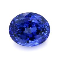 The ring features a beautiful, transparent GAL certified Blue 4.83 carat oval shape blue sapphire with the dimensions of 10.50 x 8.67 x 6.62 mm and a mixed brilliant cut. It has a clarity grade of very slightly included (evaluated at eye level), vivid color saturation, and an excellent polish. The origin of this sapphire is Ceylon (Sri Lanka).