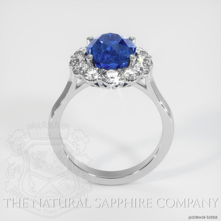 The ring features a beautiful, transparent 5.31 carat oval shape blue sapphire with the dimensions of 10.79 x 8.28 x 7.02 mm and a mixed brilliant cut. It has a clarity grade of very slightly included (evaluated at eye level), intense color saturation, and an excellent polish. The origin of this sapphire is Ceylon (Sri Lanka).