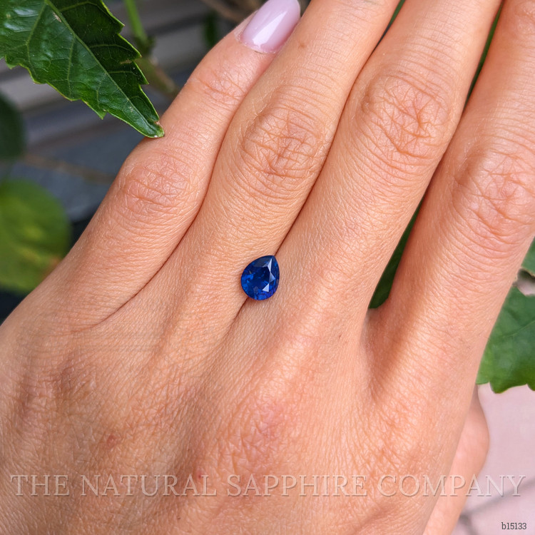Crafted with precision and care, the journey of our exquisite pearl-shaped blue sapphire ring begins deep within the rich lands of Nigeria. Born from the earth, this transparent 1.33 carat sapphire measures 6.86 by 5.53 by 4.49 millimeters and boasts a mixed brilliant cut that captures light with an unrivaled brilliance. It features an intense color saturation, a mark of its vibrant blue hues, and possesses a remarkable clarity that is very slightly included when examined at eye level. These qualities make it not just a gemstone, but a piece of nature's art.