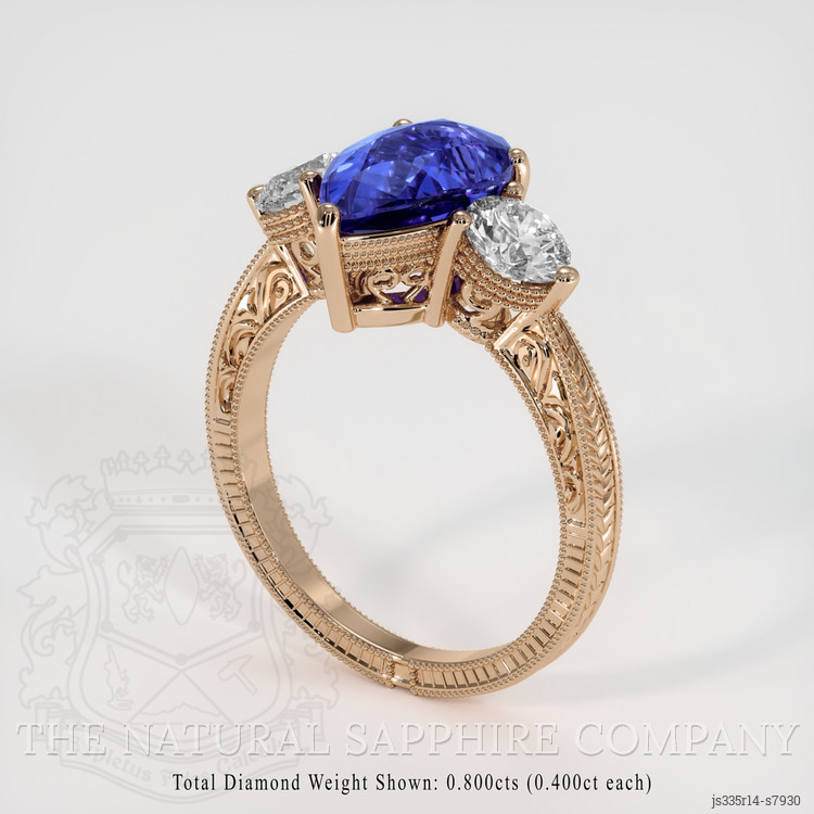 Antique Style Blue Sapphire Ring 2.87 Ct., 14K Rose Gold