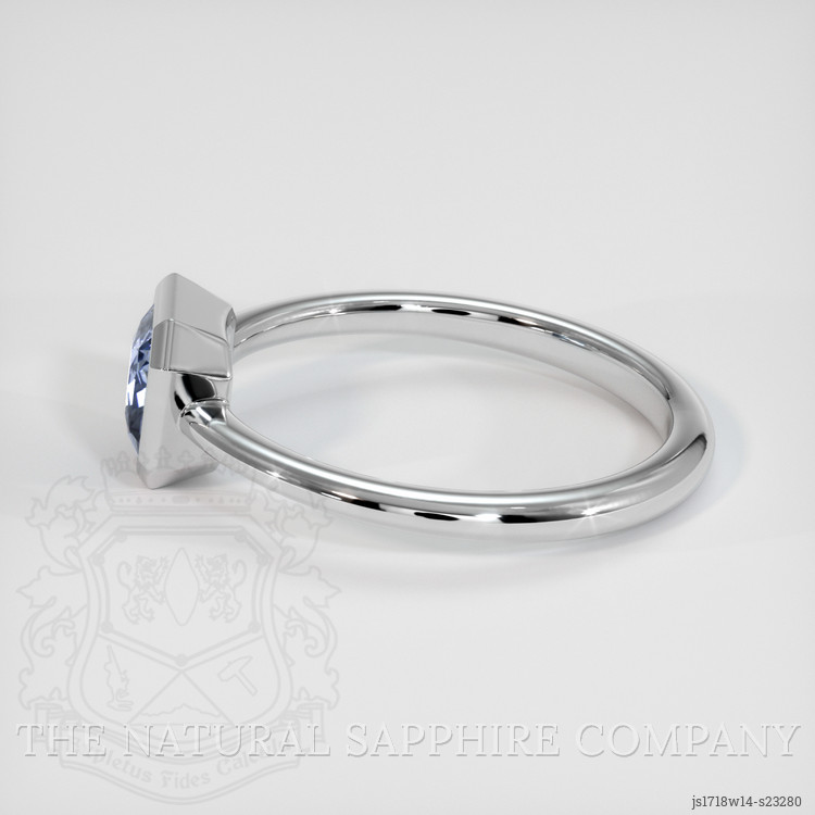 Having emerged from the expert hands of our artisans with an exemplary polish that heightens its luminous quality, this blue sapphire is set in a design of timeless elegance. A 14K white gold band encircles it's radiant beauty, its clean modernity providing a perfect contrast to the sapphire's classic charm. The minimalistic and yet sophisticated design is crafted to enhance the stone's natural elegance, offering a luxurious foundation that complements without overshadowing it. This precious metal setting not only embraces the gem in a secure hold, but also harmonizes the balance between tradition and innovation, creating a ring that speaks of a refined taste and subtle sophistication.