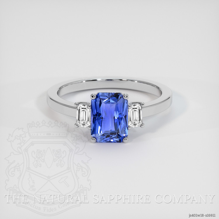 Complementing the sapphire are the dazzling companions—white emerald cut diamonds weighing approximately 0.40 carats. Each diamond, with a clarity grade of VS1 to VS2 and an ethereal color grade of E, stands as a testament to purity and grace. Their structure mirrors the clarity of a lover’s midnight promise, surrounding the sapphire with gentle embraces of light that seem to kiss its heavenly blue with the tender hush of moonlit rain.