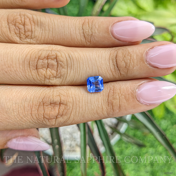 From the sun-drenched soils of Madagascar emerges a breathtaking marvel of nature—the exquisite blue sapphire that finds its home in our meticulously crafted ring at The Natural Sapphire Company. This gemstone begins its journey as a rough crystal, hidden beneath the earth's surface. It is nurtured for centuries by the warmth and vitality of its natural surroundings before it is unearthed with dedication and respect by skilled artisans. Once discovered, this sapphire undergoes a transformation, through the adept hands of expert gem cutters, it is coaxed into a radiant shape that maximizes its inherent beauty and light. The final cut reveals a 1.66-carat sapphire with dimensions of 6.68 x 6.50 x 3.93 mm, exuding a medium intense color saturation that captures the entrancing essence of the crystal-clear blue skies, as pure and clear as the waters surrounding its island birthplace.
