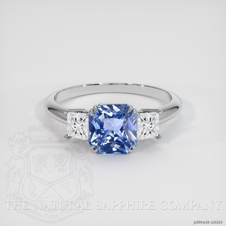 Three Stone Blue Sapphire Ring 3.00 Ct., 18K White Gold