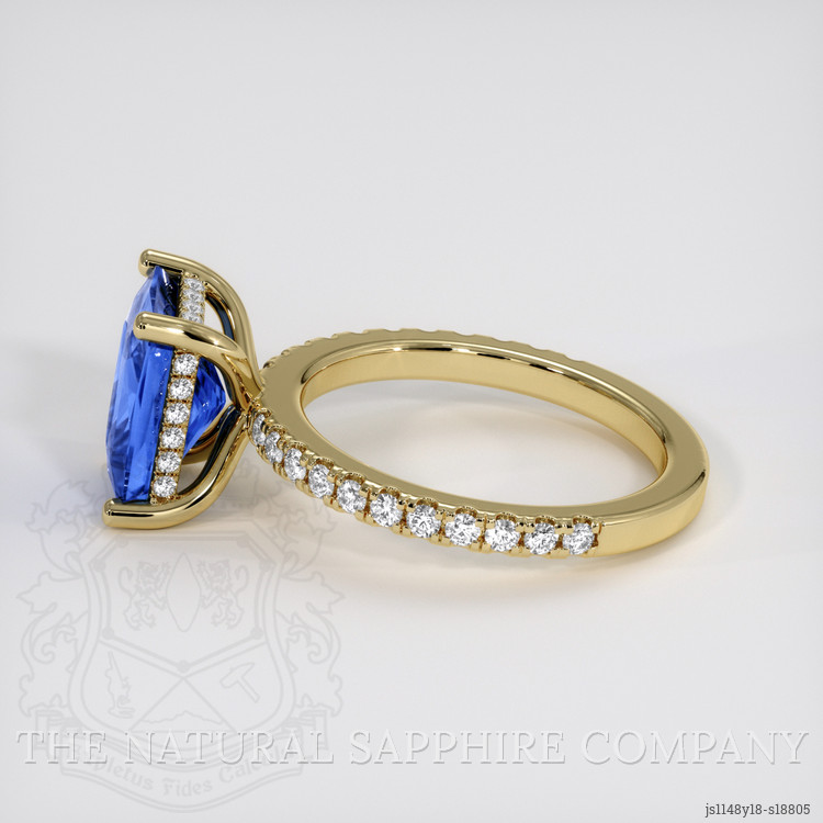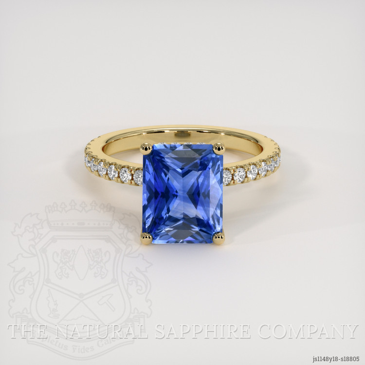 Though judged eye clean at normal viewing, this sapphire carries the small, honest signatures of its natural life, tiny internal whispers that give the stone its soul. Beneath magnification delicate wisps and faint, lace like veils can be seen, the natural fingerprints of heat and pressure that formed this jewel over millennia, and these quiet inclusions catch and scatter light in ways that make every angle a new discovery. Where some gems strive for sterile perfection, this sapphire prefers character, its subtle internal landscape lending a depth and a velvety shimmer that shifts like a secret behind glass, inviting a closer look and a softer touch. The radiant cut amplifies these inner vistas, turning whispers into flashes that play against the diamonds and fall warm against the yellow gold. At The Natural Sapphire Company we celebrate these natural stories, the marks that prove origin and life, and we craft settings that honor them. For someone seeking a piece that is both a statement and a keepsake, this ring is a living treasure, a blue jewel with a history you can wear, and an intimacy that only nature could compose.