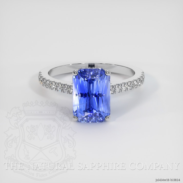 The ring features a beautiful, transparent Other certified Blue 4.67 carat radiant shape blue sapphire with the dimensions of 10.31 x 7.11 x 6.11 mm and a radiant cut. It has a clarity grade of very slightly included (evaluated at eye level), intense color saturation, and an excellent polish. The origin of this sapphire is Ceylon (Sri Lanka).