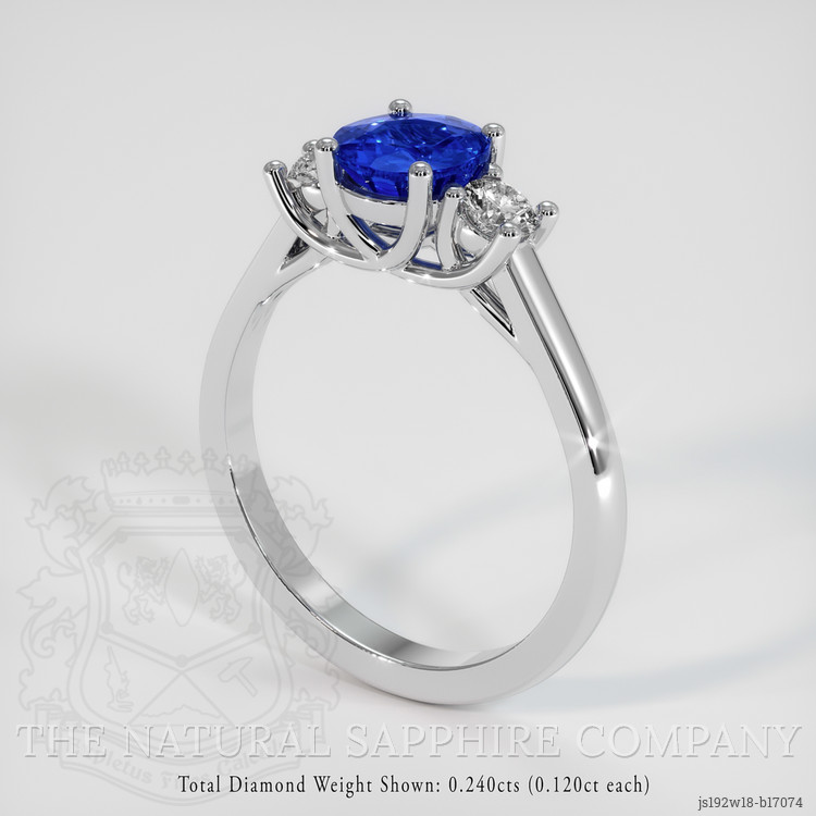 Three Stone Blue Sapphire Ring 1.09 Ct., 18K White Gold