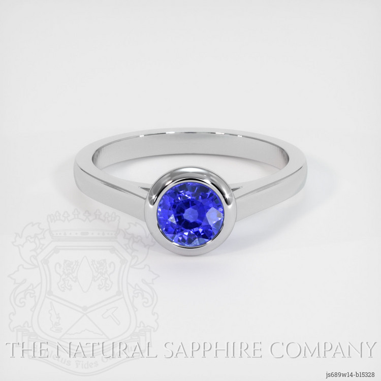 Bezel Blue Sapphire Ring 1.12 Ct., 14K White Gold
