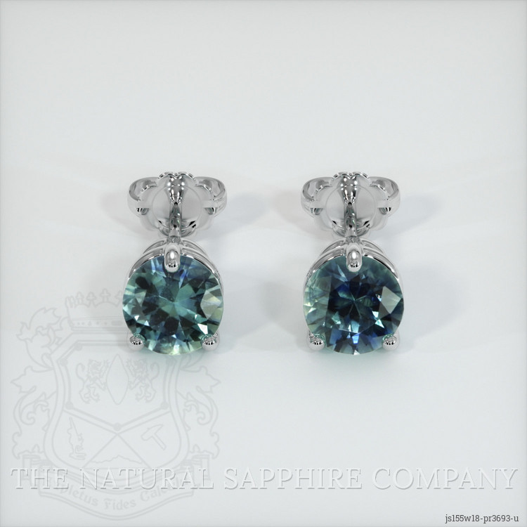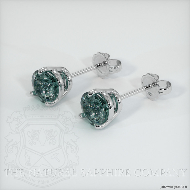 Studs Bluish Green Sapphire Earring 0.86 Ct.Tw.Total Carat Weight, 18K White Gold