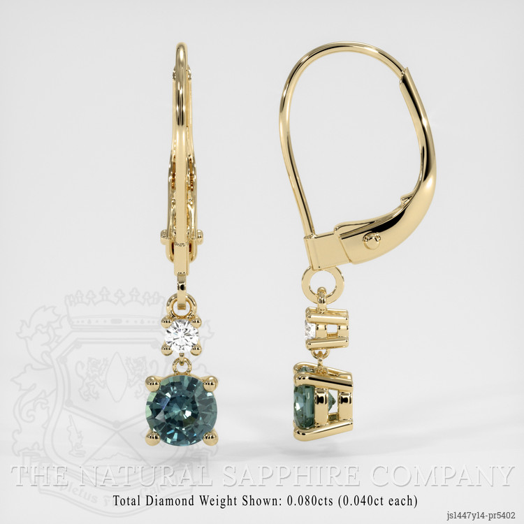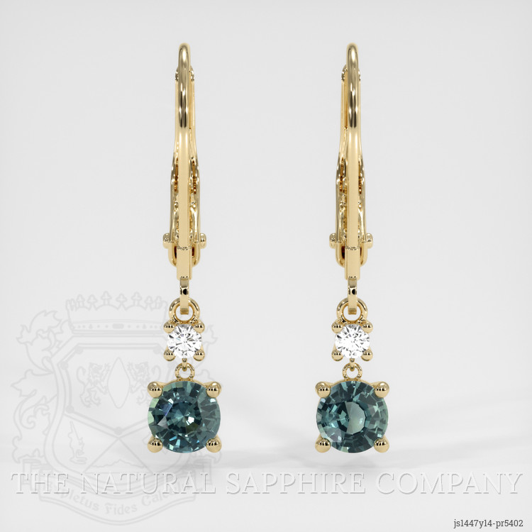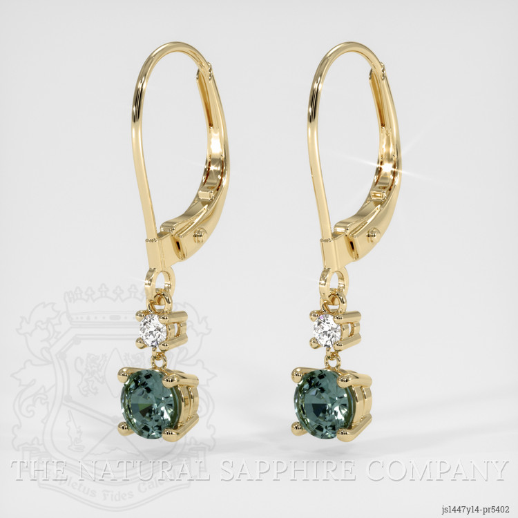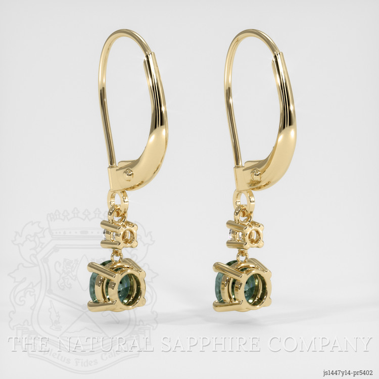 Accent Stones Bluish Green Sapphire Earring 0.87 Ct.Tw.Total Carat Weight, 14K Yellow Gold