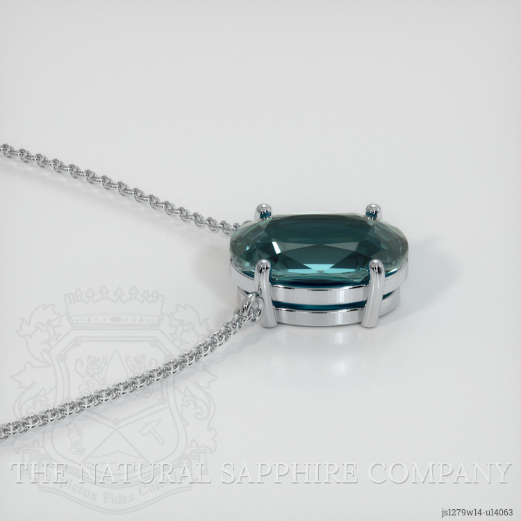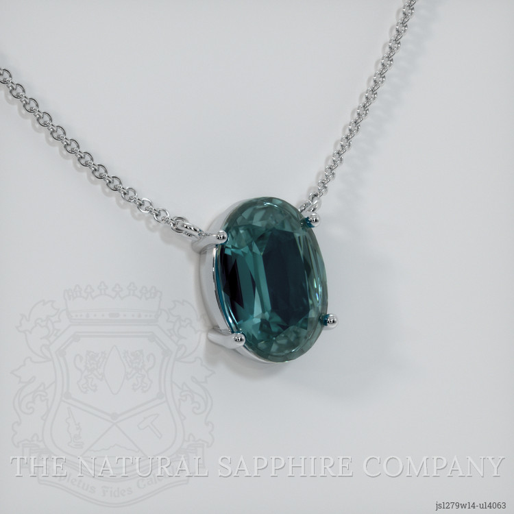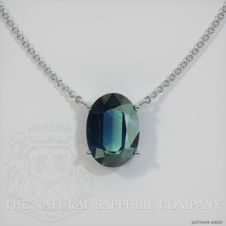Solitaire Bluish Green Sapphire Necklace 3.24 Ct., 14K White Gold