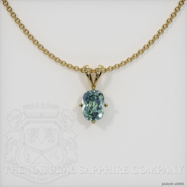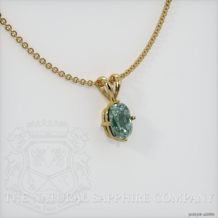Solitaire Bluish Green Sapphire Pendant 0.52 Ct., 18K Yellow Gold