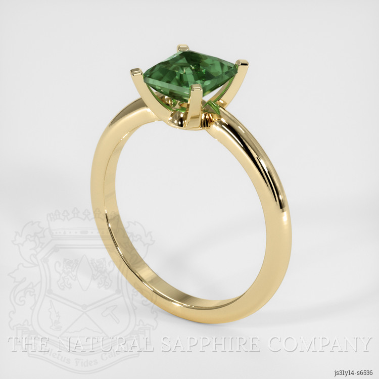 Solitaire Bluish Green Sapphire Ring 1.55 Ct., 14K Yellow Gold