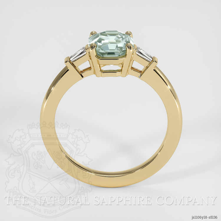 This stunning ring is designed to captivate your heart and enchant your senses. At the center, it features a breathtaking 1.58 carat Asscher-cut octagon-shaped sapphire. The transparent bluish green sapphire, sourced from Montana, showcases dimensions of 6.53 x 6.47 x 4.64 mm and is a true marvel with its medium intense color saturation and an eye-level clarity grade of very slightly included. The sapphire's excellent polish adds a dazzling brilliance, sure to make you feel extraordinary each time you wear it.